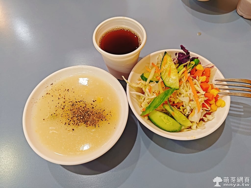 ▲ 自取的玉米濃湯、紅茶及沙拉。