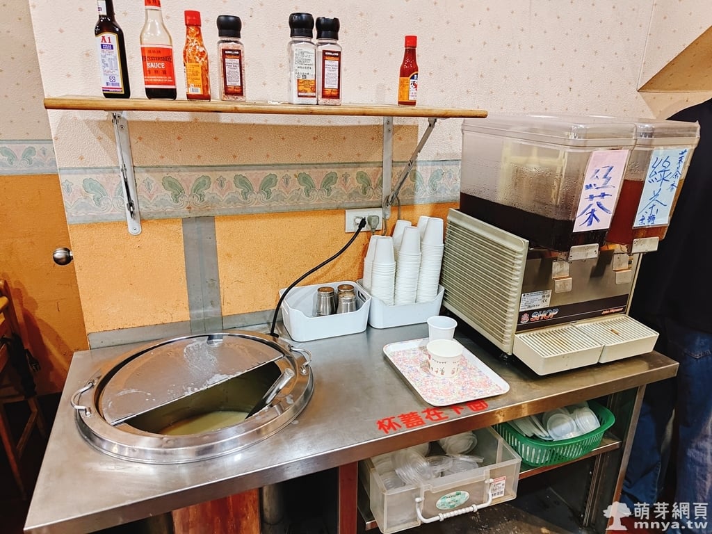 ▲ 玉米濃湯、紅茶、綠茶、餐具自取區。