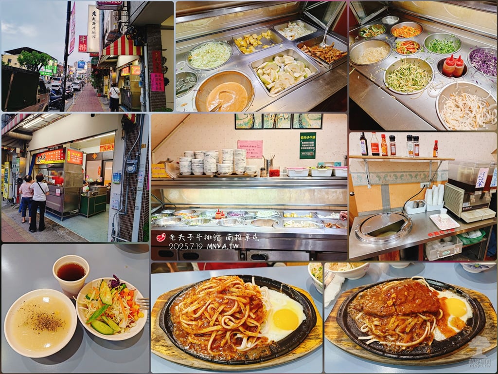 「老夫子牛排館」位在中正路835號,草屯市區內。店家提供牛排、豬排、雞腿排、魚排、魷魚、雙拼和鐵板麵等,為一家牛排館。有菜單可參考,內用先付款,可使用現金或全支付,無收據及發票 🧾,座位多,餐具、醬料自取🥢,有提供玉米濃湯、紅茶、綠茶、各式沙拉,皆可依據自己的食量取用。即便於尖峰時間前來,內用空間仍還有空位,環境乾淨舒適。送餐速度快,約 12 分鐘內全送上。店內有廁所可利用。