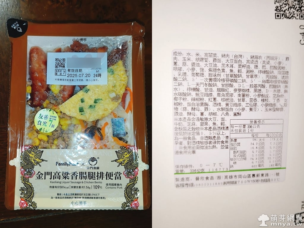 ▲「金門高粱香腸腿排便當」包裝及產品資訊。