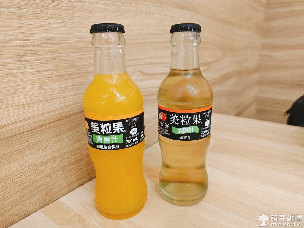 ▲ 飲料:美粒果柳橙綜合果汁及蘋果汁。