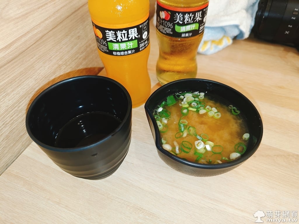 我點「炸豬排和風飯(含炸豬排、白飯、和風配菜,139元)」,和風配菜清爽開胃,搭配現炸豬排,份量十足,很有飽足感,可吃飽,好吃 😋;我弟點了「經典組合-特製蛋包飯(含蛋包飯、炸豬排、小菜,飯多,199元)」,份量充足,可以吃飽。另外還點了「可樂(2杯,50元)」,不過剛好沒可樂了,所以選了同價位的美粒果柳橙綜合果汁及蘋果汁,都是玻璃瓶身,飲料機自取,右側有開瓶器可使用。