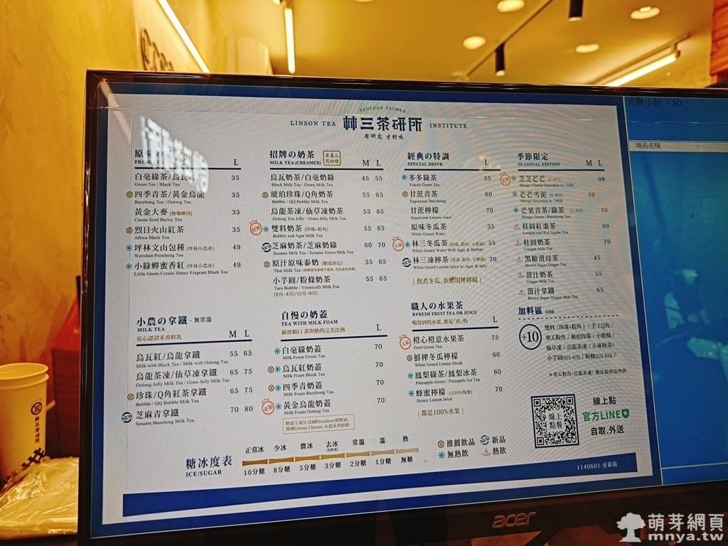 林三茶研所由竹科工程師創立,經過五年的努力,克服資金短缺和疫情挑戰,現已在桃園、新北、宜蘭等地開設十家門市。品牌秉持專業與創新精神,融合科技與手工藝,致力於提供精緻的茶飲選擇。創辦人將工程師的精準與執著注入每一杯茶的製作過程,讓顧客體驗獨特的茶飲文化。林三茶研所的招牌飲品包括:雙料奶茶,四季青茶,烈日火山紅茶,黃金烏龍奶蓋,林三冬瓜茶,橙心橙意水果茶。當天準備離開蘇澳回程前到這家飲料店買飲料。