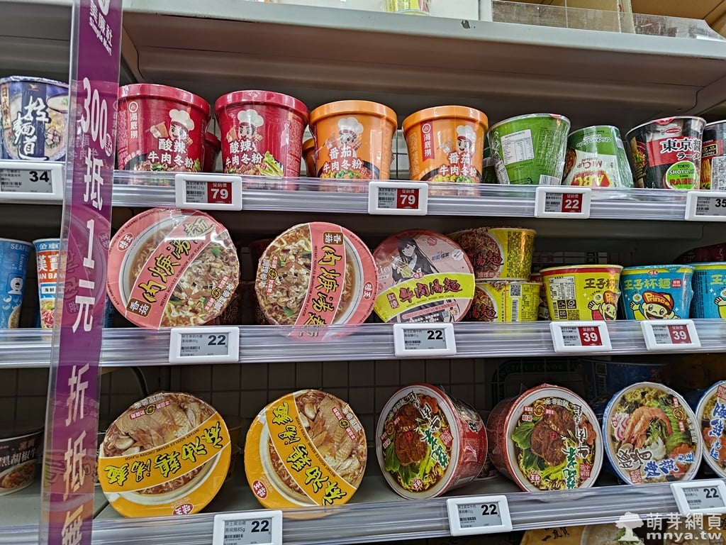 ▲ 各式味王泡麵在美廉社貨架上陳列,紅燒牛肉湯碗麵只要 22 元,有些口味還沒看到新版聯名包裝。