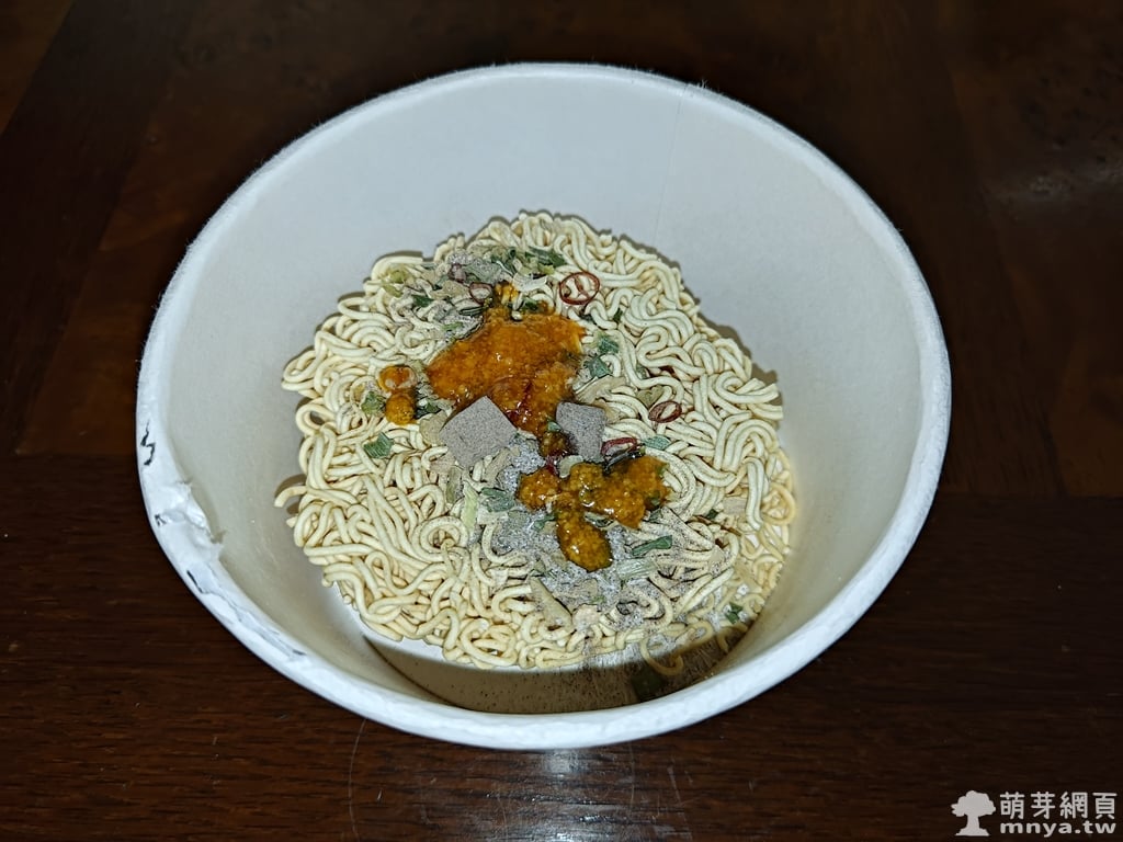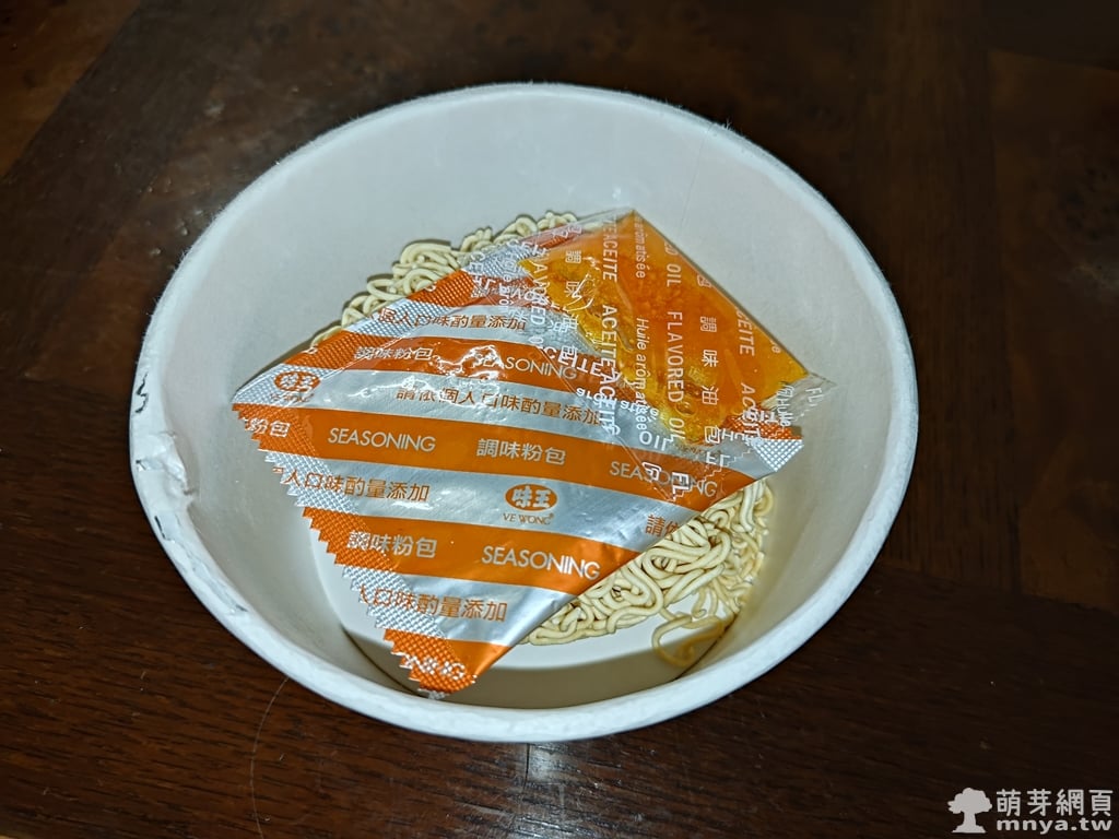 ▲ 拆封後內容物有一包麵餅與兩包調味:橘色的是油包、銀色是粉包,操作簡單直覺,新手也能輕鬆泡好。