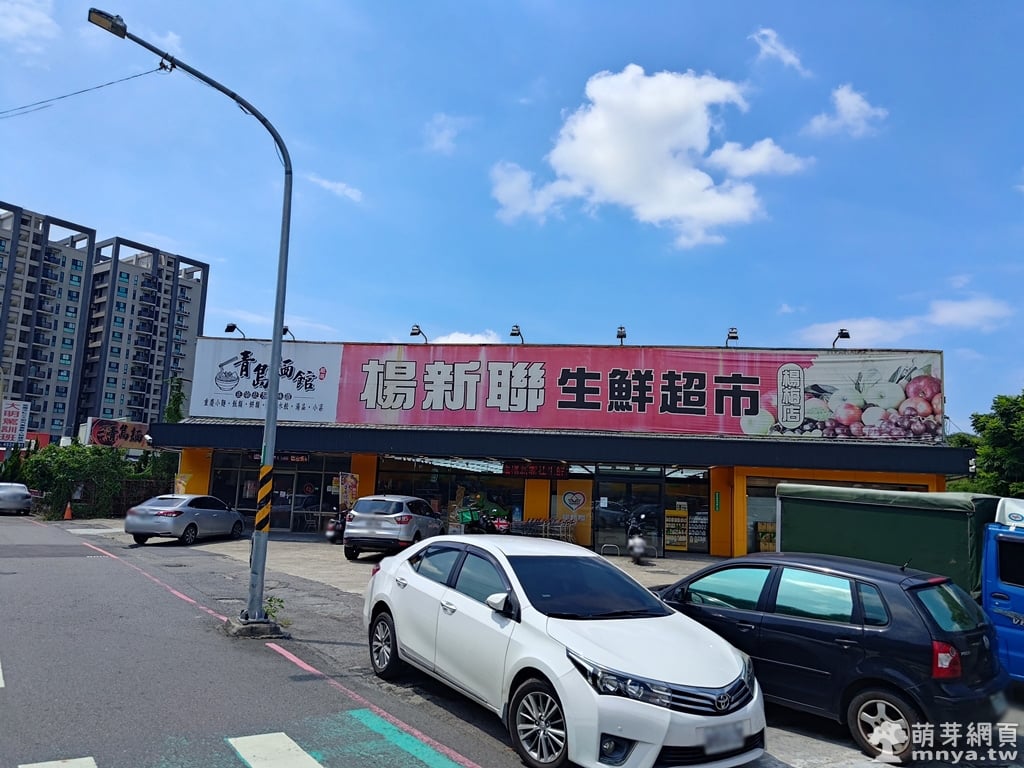 ▲ 楊新聯生鮮超市楊梅店外觀,簡潔的建築搭配醒目的粉紅色招牌,第一眼就能感受到它的樸實與親切感,門口停車位相當方便。