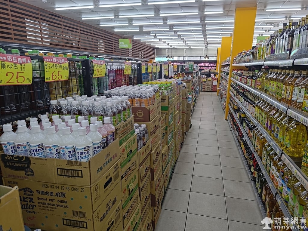 ▲ 飲料區擺滿了各式瓶裝飲品與食用油品,價格透明標示清楚,方便比較選購。