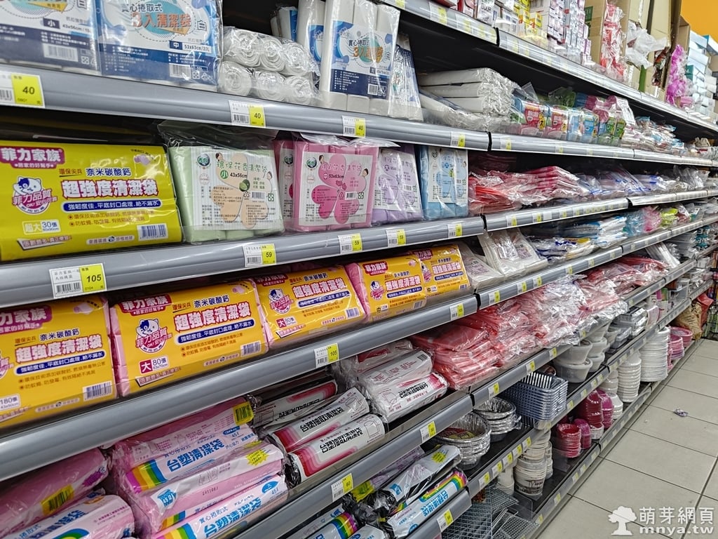 ▲ 家庭必備的清潔用品與一次性餐具整齊擺放,採買起來一站就能搞定。