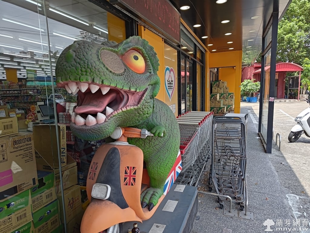 ▲ 門口旁的恐龍騎機車,也為這家在地超市增添了一點童趣。