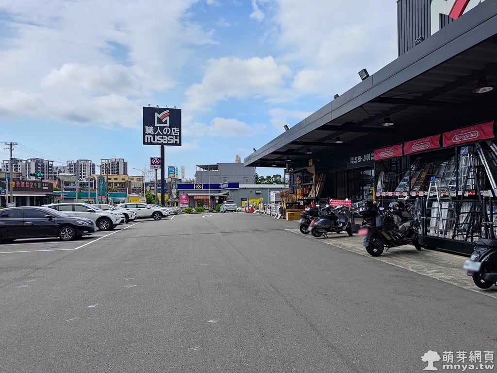 ▲ 停車場空間寬敞,可容納多輛汽車與機車,正對面即可看到顯眼的「職人的店 Musashi」高立牌。