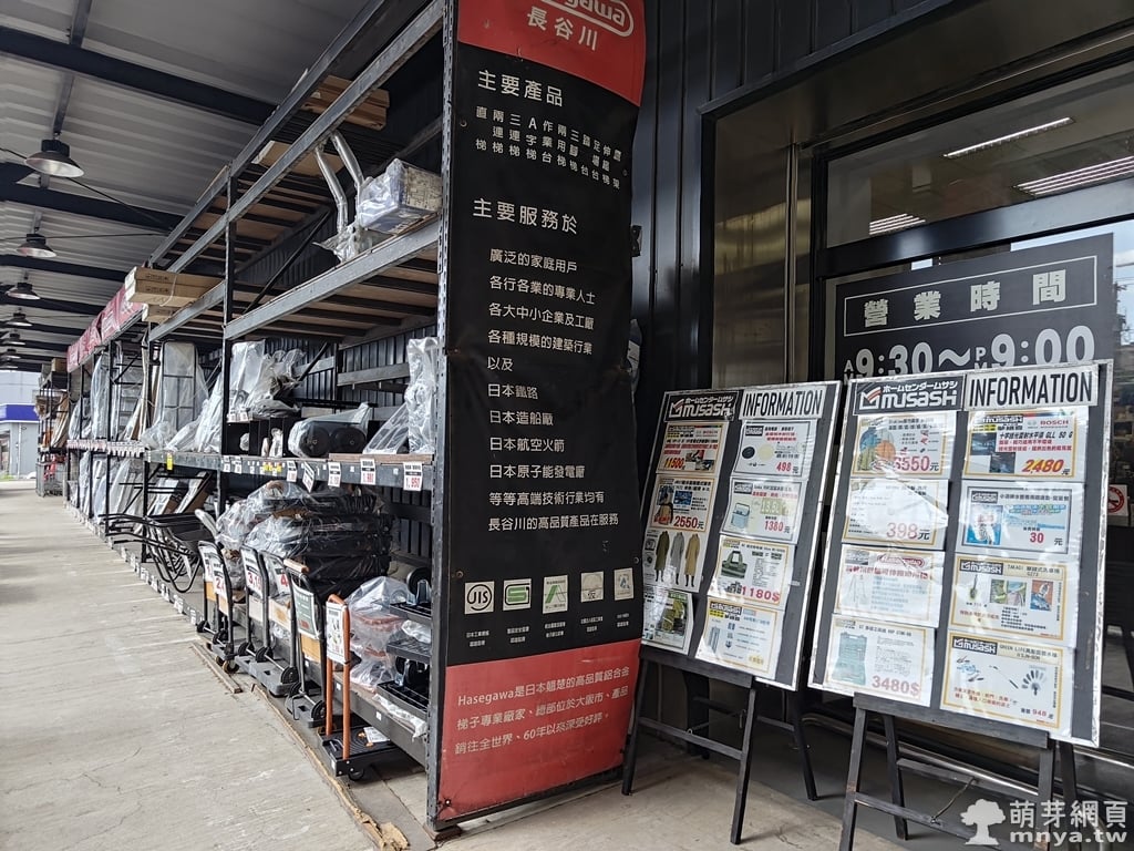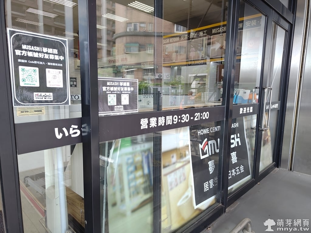 ▲ 店面外觀招牌清楚醒目,「Musashi」LOGO 搭配日文名稱,整體風格帶有濃厚的日系家居五金賣場氛圍。