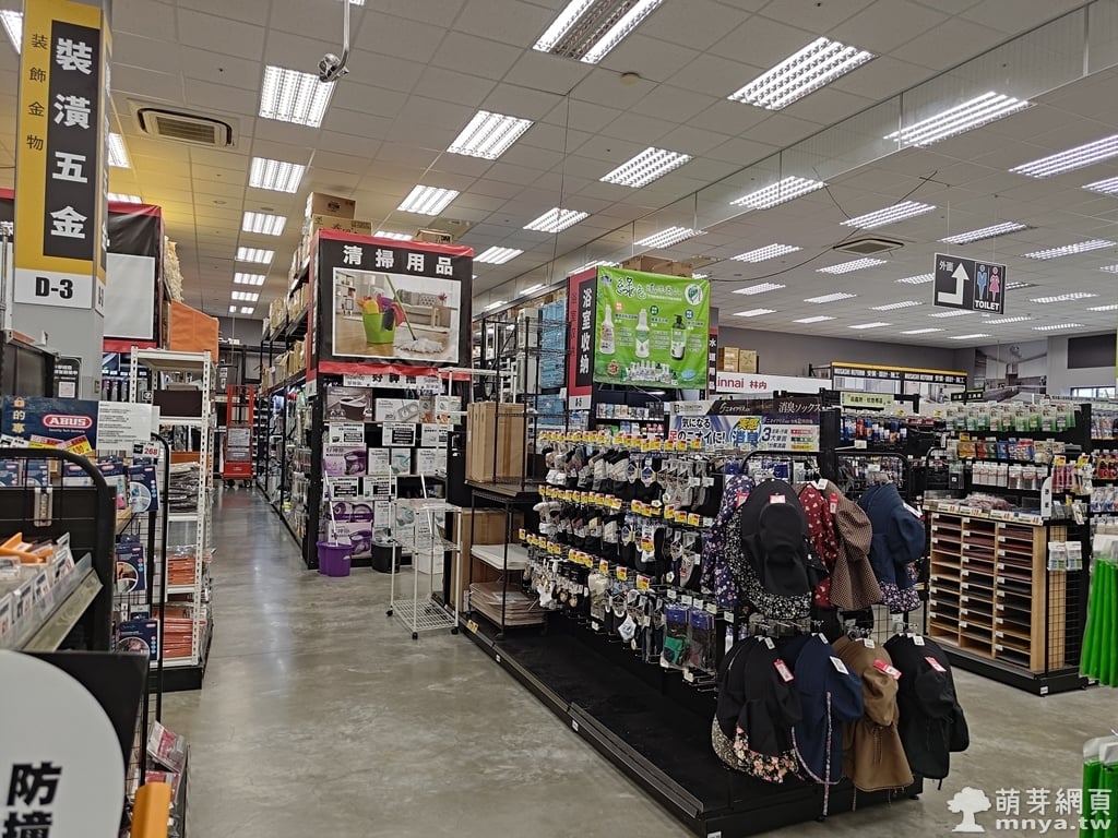 ▲ 陳列架整齊擺放各式家庭與裝修用品,包含清潔工具、浴室收納與裝飾五金。