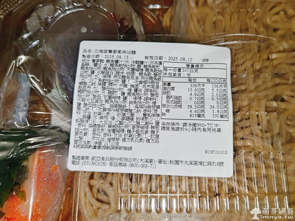 ▲「北海道蕎麥風味沾麵」產品資訊。