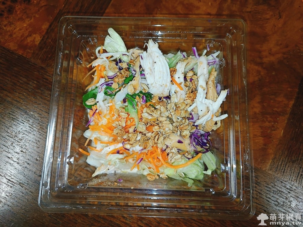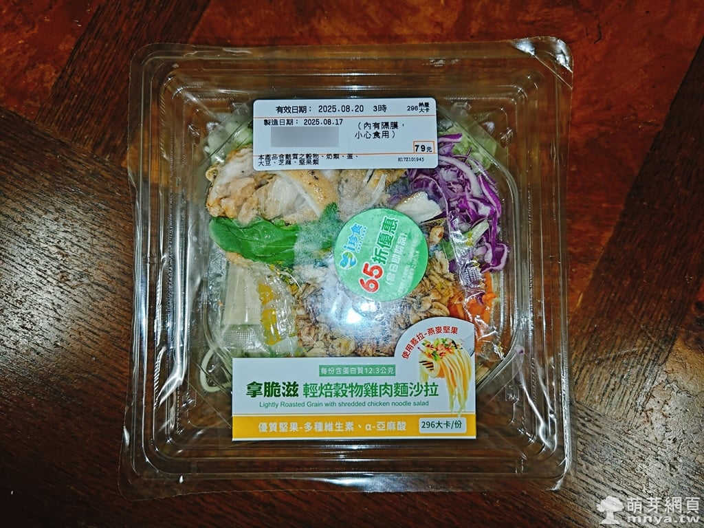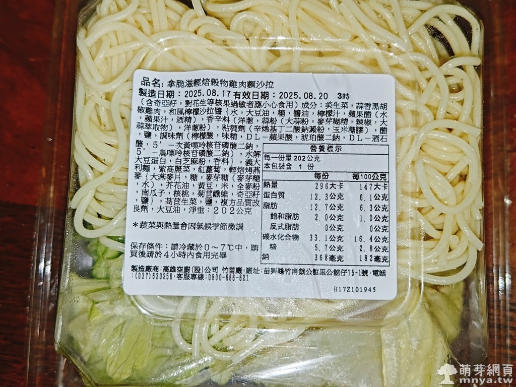 ▲ 「拿脆滋輕焙穀物雞肉麵沙拉」的外包裝一目了然,清楚標示熱量與營養資訊,整體透明盒設計也能直接看到食材顏色,看起來很清爽。