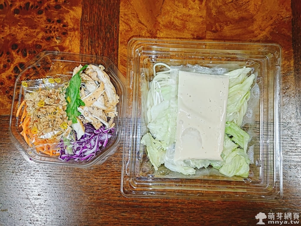 ▲ 打開後分成兩格,左邊是配料和雞肉絲,右邊則是生菜與麵條,並附上和風胡麻醬汁,組合清楚分明。