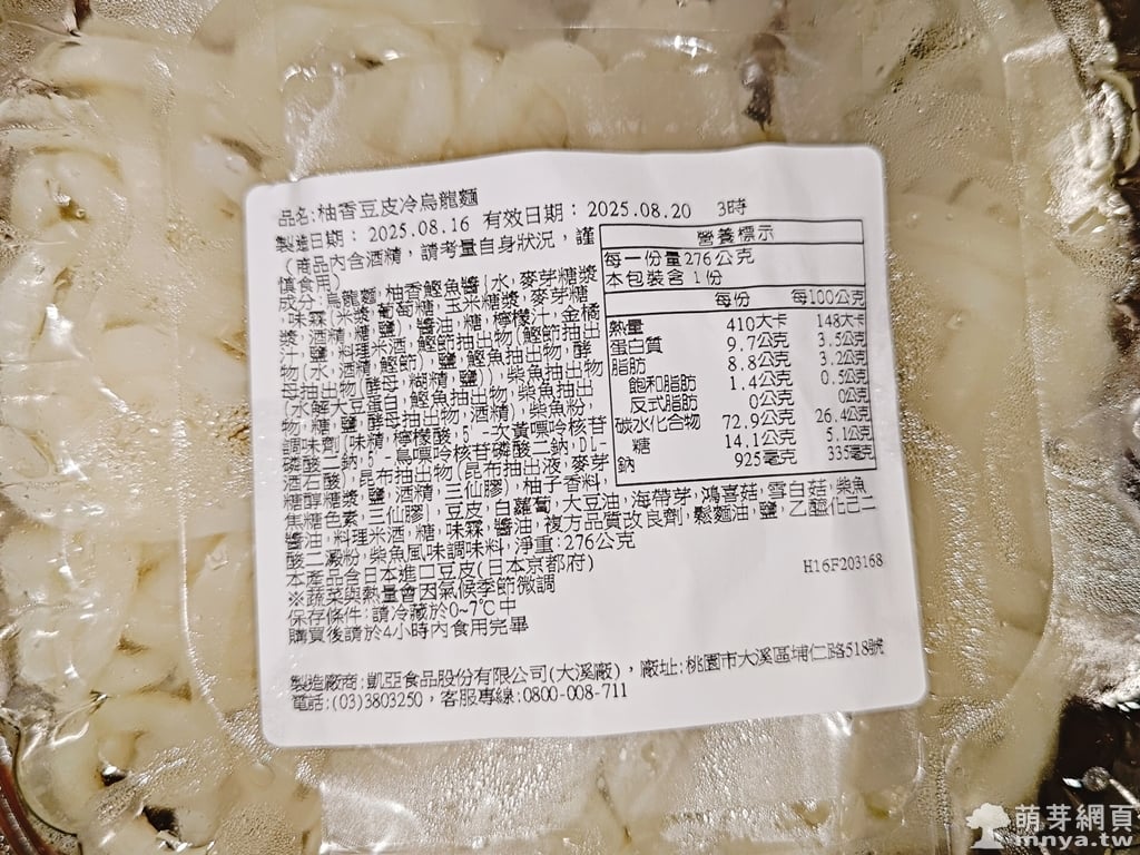 🍱 柚香豆皮冷烏龍麵 89元/276公克/410大卡