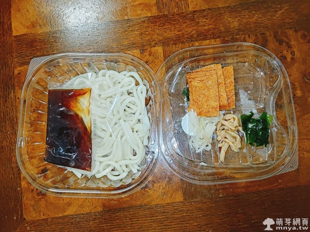 ▲ 打開內盒後,可以看到烏龍麵和醬料分裝,豆皮、海帶芽與洋蔥、滑子菇等配菜另外放置,保持新鮮。