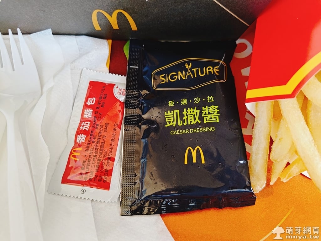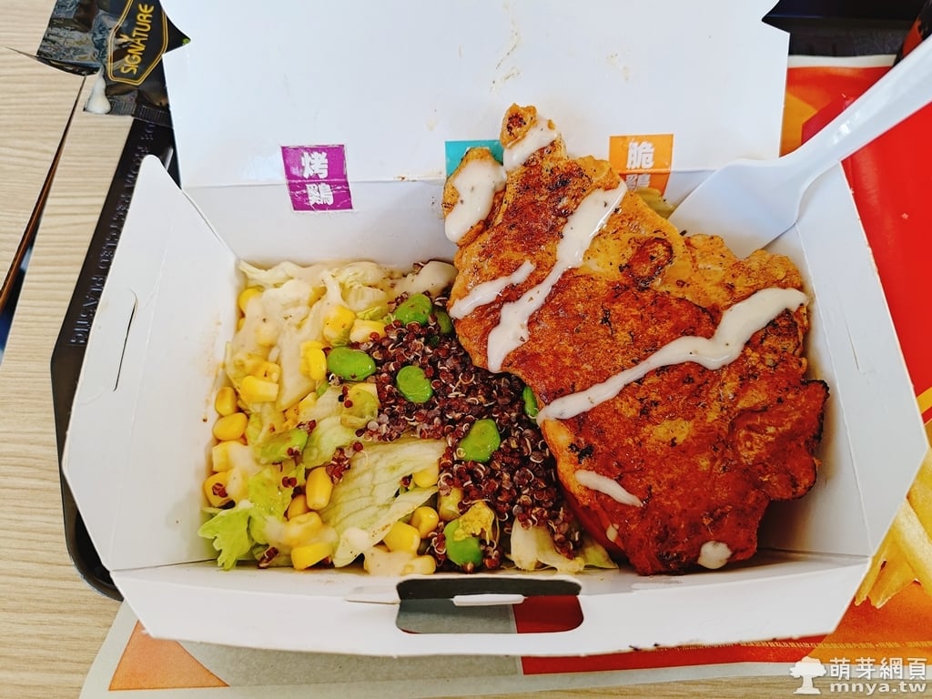 ▲ A 餐全貌登場,可以看到完整的薯條、中杯可樂,以及標有「SIGNATURE」字樣的沙拉餐盒,看起來就和一般套餐很不一樣,多了一點健康系的感覺。