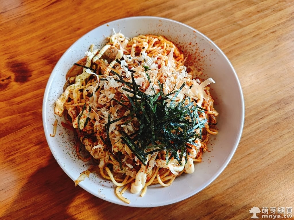 我點「大阪炒麵(豬,160元)」,有高麗菜、柴魚片、美乃滋、豬肉麵、七味粉、海苔等,口味較重,好吃 😋,份量足,可吃飽;K 同事點了「燒肉飯(牛,200元)」,份量蠻大的,可以吃飽,不錯吃。日式料理口味較重,建議搭配無糖茶解膩。