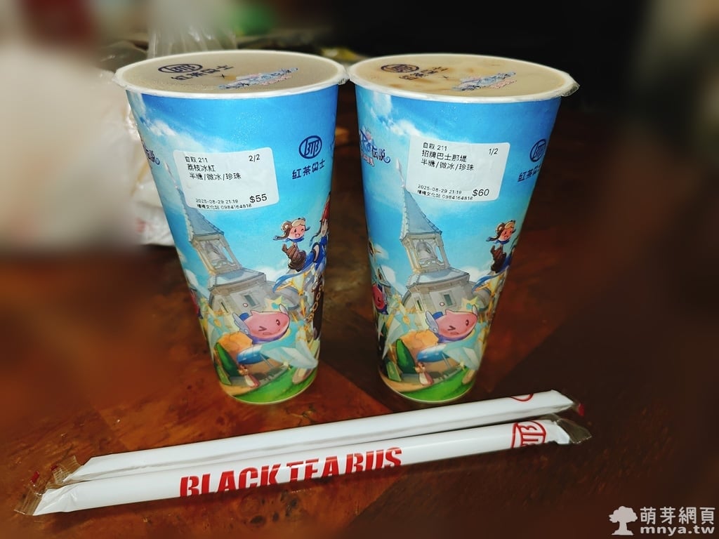 我點「荔枝冰紅(+珍珠,特價50元)」,半糖/微冰,選用台灣玉荷包荔枝的清甜果香,與招牌紅茶完美調和,再搭配 Q 彈小珍珠與爽脆椰果,層次豐富,酸甜清新中帶來獨特嚼感;我弟點「招牌巴士那堤(+珍珠,60元)」,半糖/微冰,濃郁紅茶與香醇鮮奶細緻融合,入口滑順又保有茶韻厚度,加入小珍珠增添咀嚼樂趣,打破單調。兩款都好喝 😋。