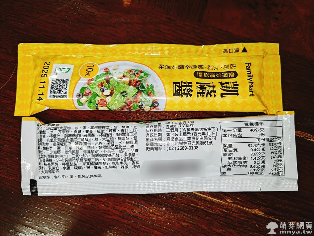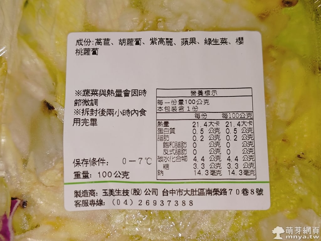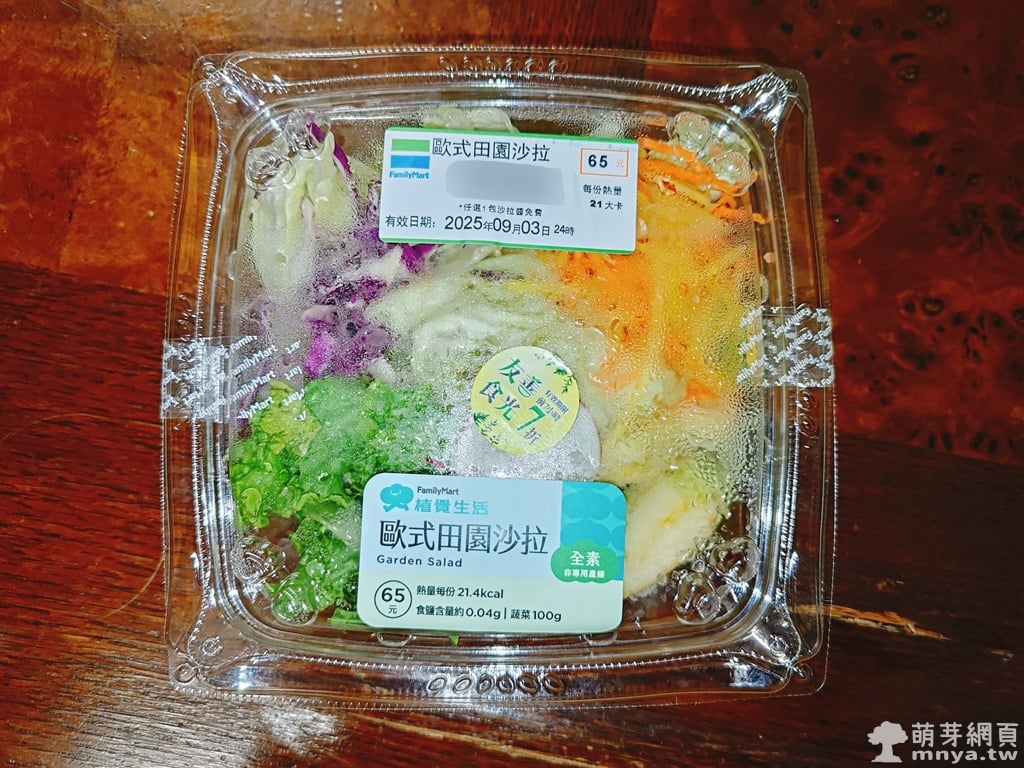 🥗 歐式田園沙拉:熱量 21.4 大卡、100 公克,售價新台幣 65 元。