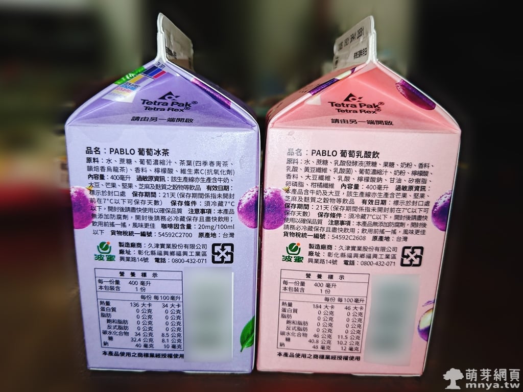 ▲ 側面產品資訊,左:PABLO葡萄冰茶、右:PABLO葡萄乳酸飲。