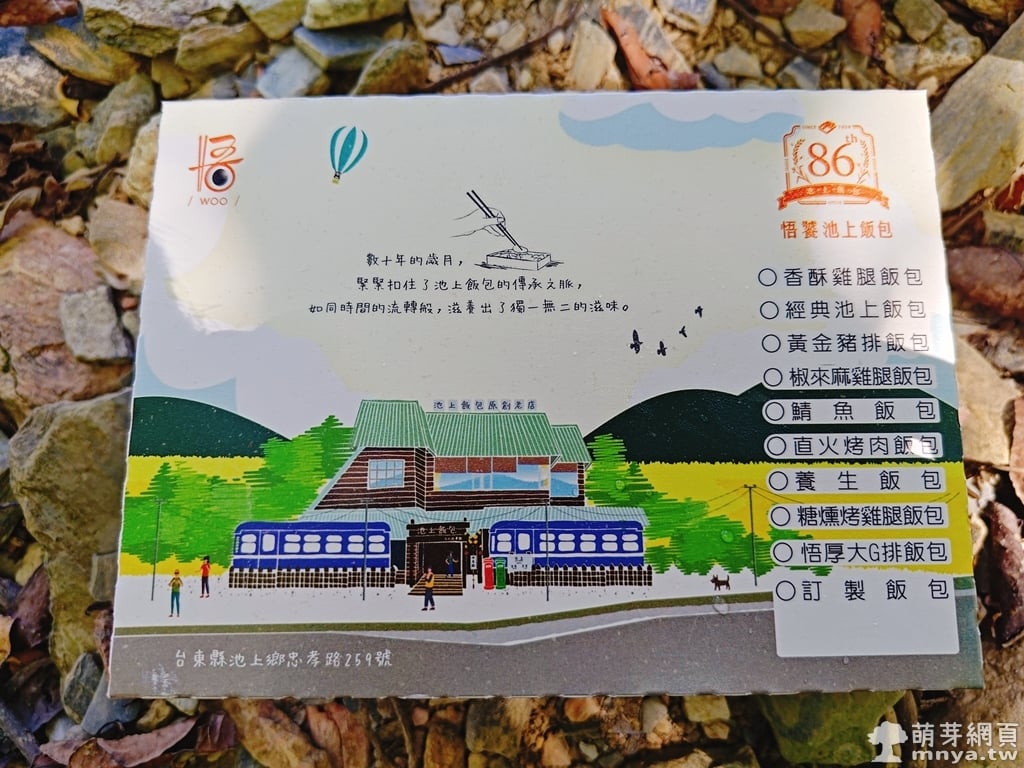 根據官網敘述,「悟饕池上飯包」承襲 1939 年起池上飯包的悠久歷史,以在地池上米為基底,搭配各式經典配菜,如卜肉、烤肉乾與炸蝦餅,展現台灣鐵道便當的原味精神。品牌標誌中的「悟」象徵對米食文化的思考與用心,融合筷子、文化底蘊與人本關懷。1999 年正式命名為「悟饕池上飯包」,積極推動全台連鎖及海外發展,堅持「飯包是做給出外人吃的,一定要用心做」的理念,讓家鄉的溫暖滋味陪伴每一位旅人。這次摸的基石靠近蘇澳,順路來外帶便當到目標停車處享用。