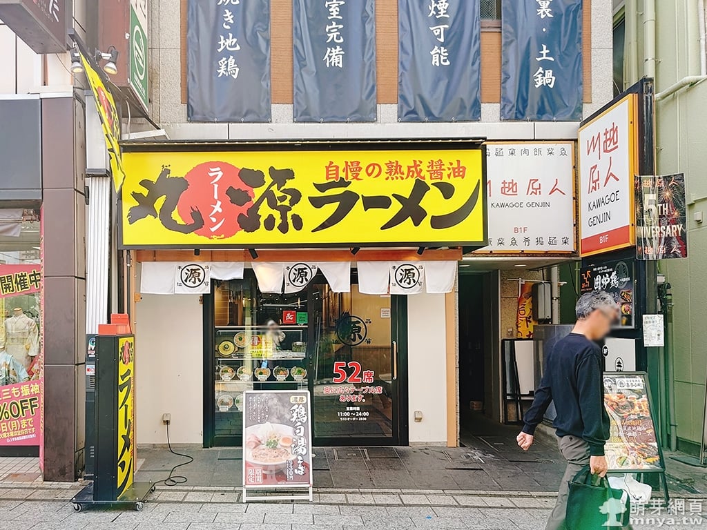 ▲ 店面位於川越熱鬧的クレアモール商店街上,鮮黃的招牌非常醒目,寫著「自慢の熟成醬油」,即代表這家以熟成醬油湯頭聞名的拉麵連鎖品牌「丸源ラーメン」。