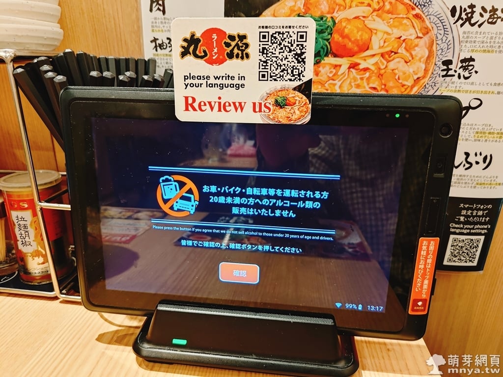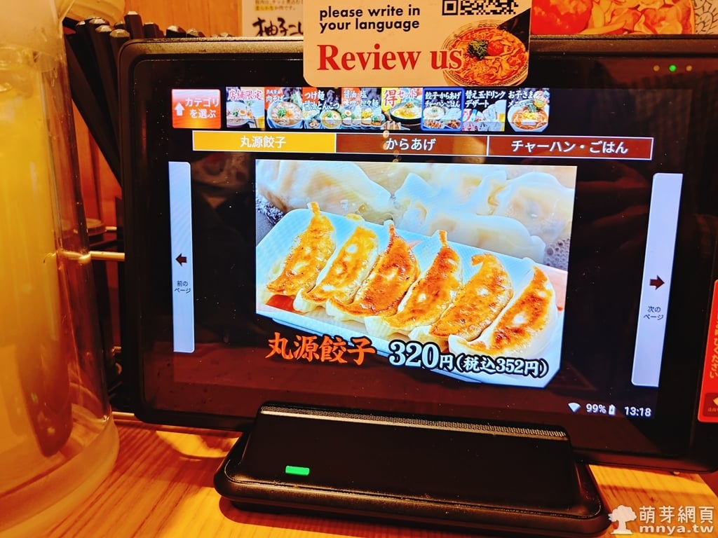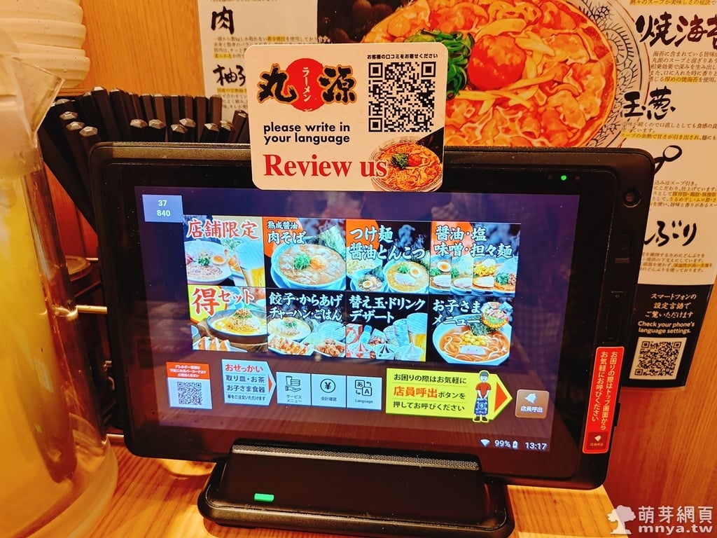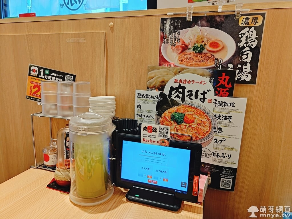 我們「2025日本關東行」DAY1 的午餐,來到位於川越商店街中心的「丸源ラーメン 川越クレアモール店」。這家拉麵店坐落於熱鬧的クレアモール(Crea Mall)商店街上,距離川越車站步行約五分鐘。外觀是醒目的黃色招牌,上頭寫著「自慢の熟成醬油」,顯眼又帶點昭和風味。店內空間比想像中寬敞,以溫潤的木質色調為主,乾淨明亮、氣氛輕鬆。桌上備有壺裝冰綠茶可自取,茶香清爽解膩,是日本連鎖拉麵店常見的貼心設計。點餐方式採平板自助點餐,畫面還附有實拍圖片與價格,操作相當直覺。