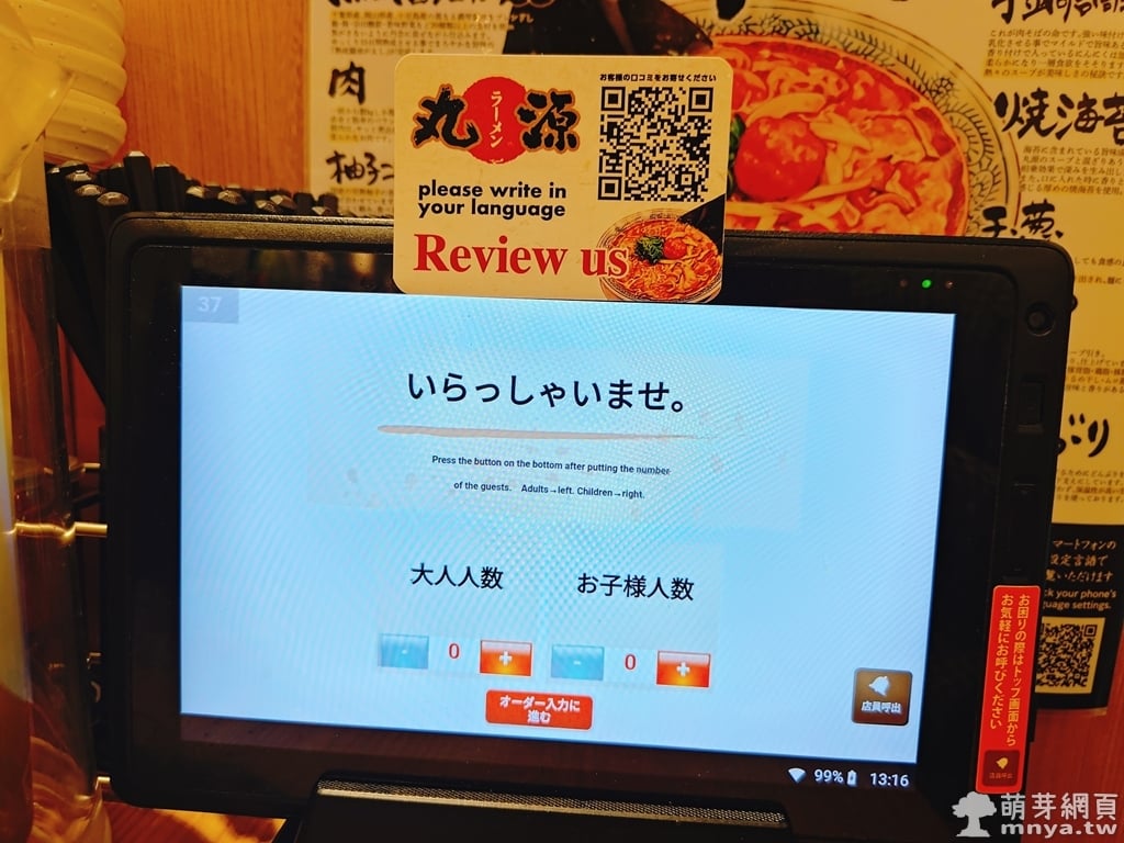 ▲ 平板介面,先選擇大人與小孩人數後即可開始點餐,操作簡單直覺,對觀光客十分友善。