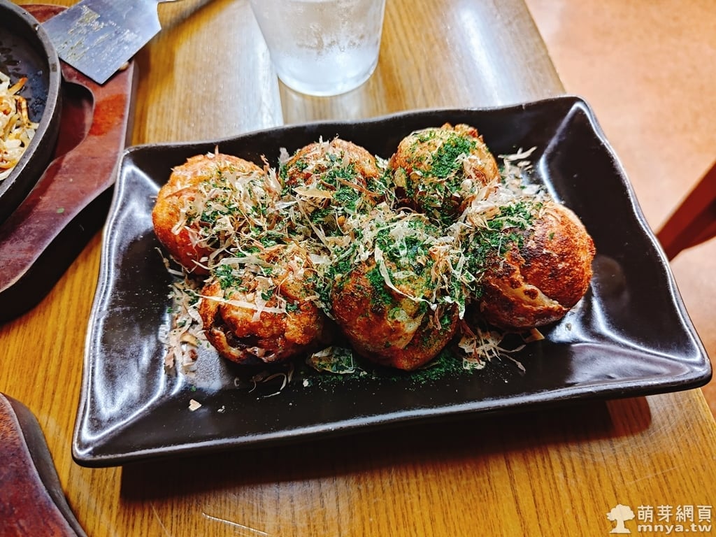 ▲ たこ焼き(6個)外層金黃酥脆,熱氣中柴魚片飄動。撒上青海苔粉與醬汁後的香氣迷人,是經典又平價的美味。
