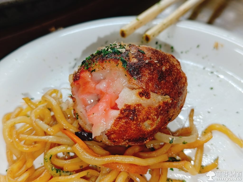 ▲ 咬開後章魚燒內餡滑嫩,章魚塊鮮甜彈牙,紅薑與麵糊交織出微鹹帶甜的風味。趁熱入口,外脆內軟的口感恰到好處。
