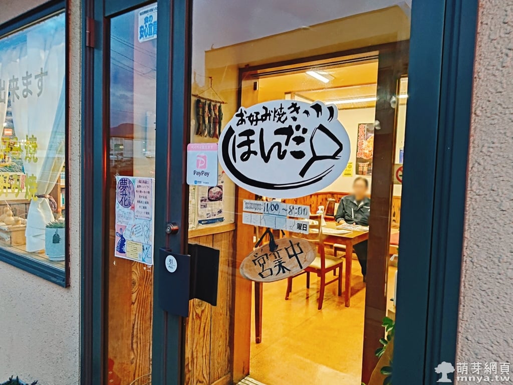▲ 門口貼著「お好み焼き ほんだ」的店徽,玻璃上也能看到 PayPay 等電子支付貼紙,十分方便。
