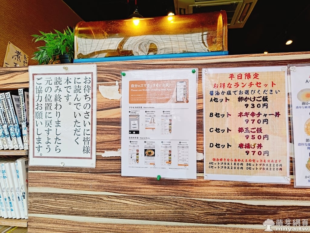 ▲ 另外還張貼了平日限定的午餐組合,價位約 930~970 日圓,相當划算。旁邊還有手機點餐教學,可直接掃 QR Code 下單。