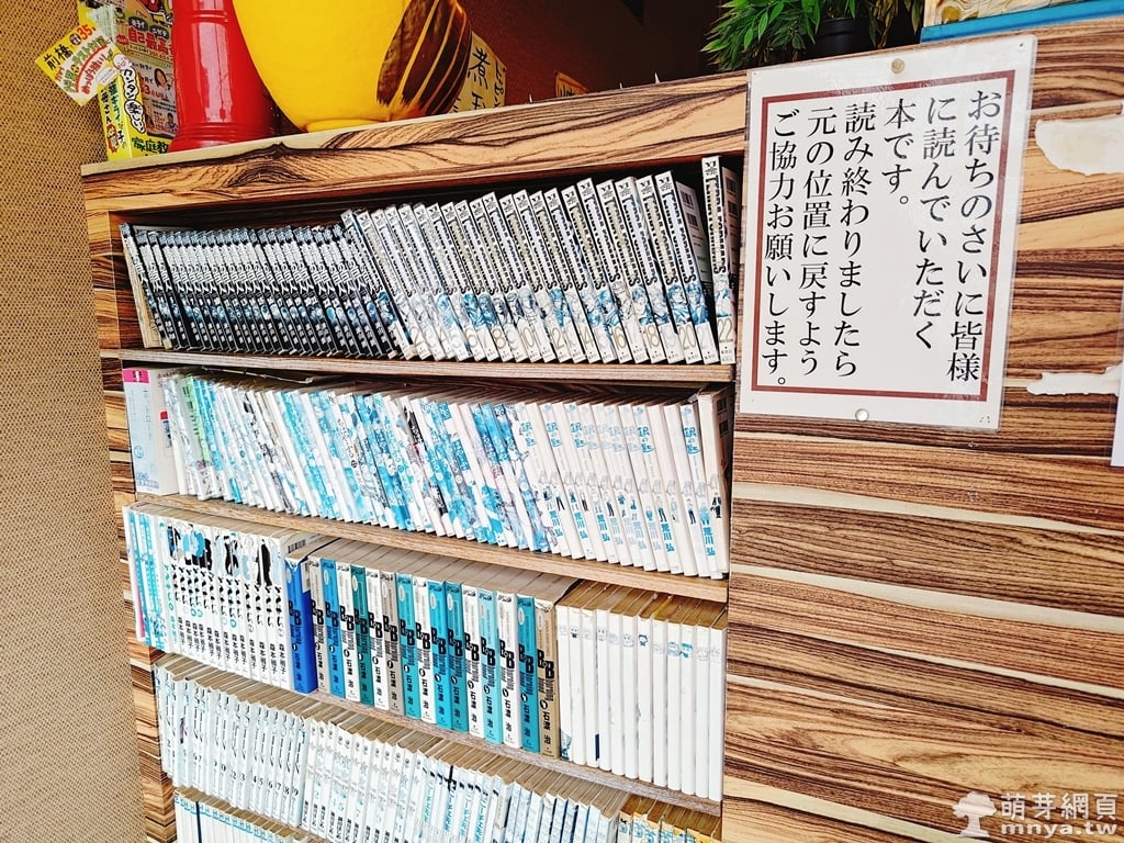 ▲ 牆邊設有漫畫書架,讓客人在等位時打發時間。