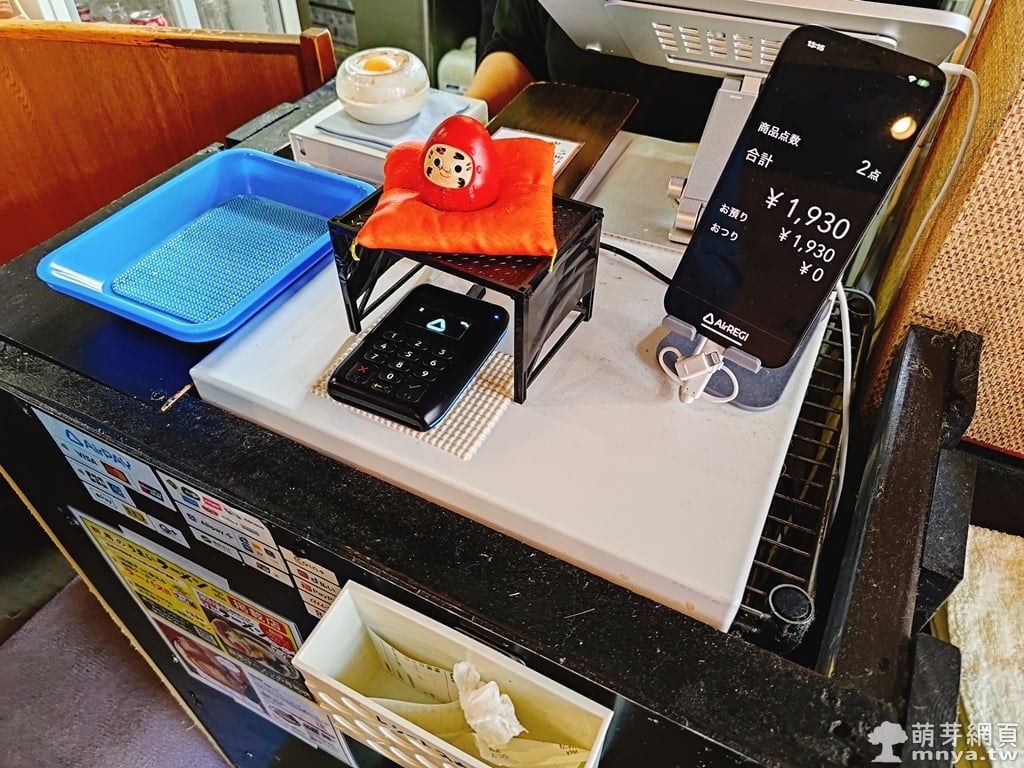 ▲ 結帳櫃檯上放著小達摩與電子收銀系統,象徵好運與繁盛。翔鶴支援多種電子支付方式,對旅客相當友善。