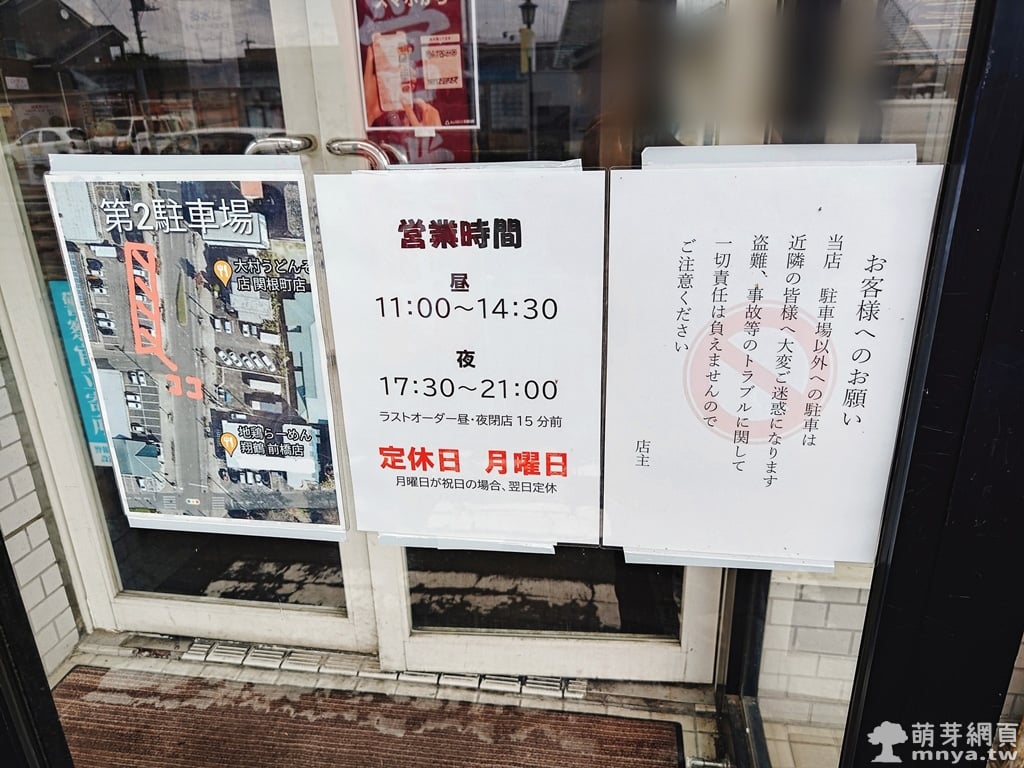 ▲ 門口張貼的營業時間清楚標示:午餐 11:00~14:30、晚餐 17:30~21:00,週一公休。若週一逢假日,則改隔天休息。
