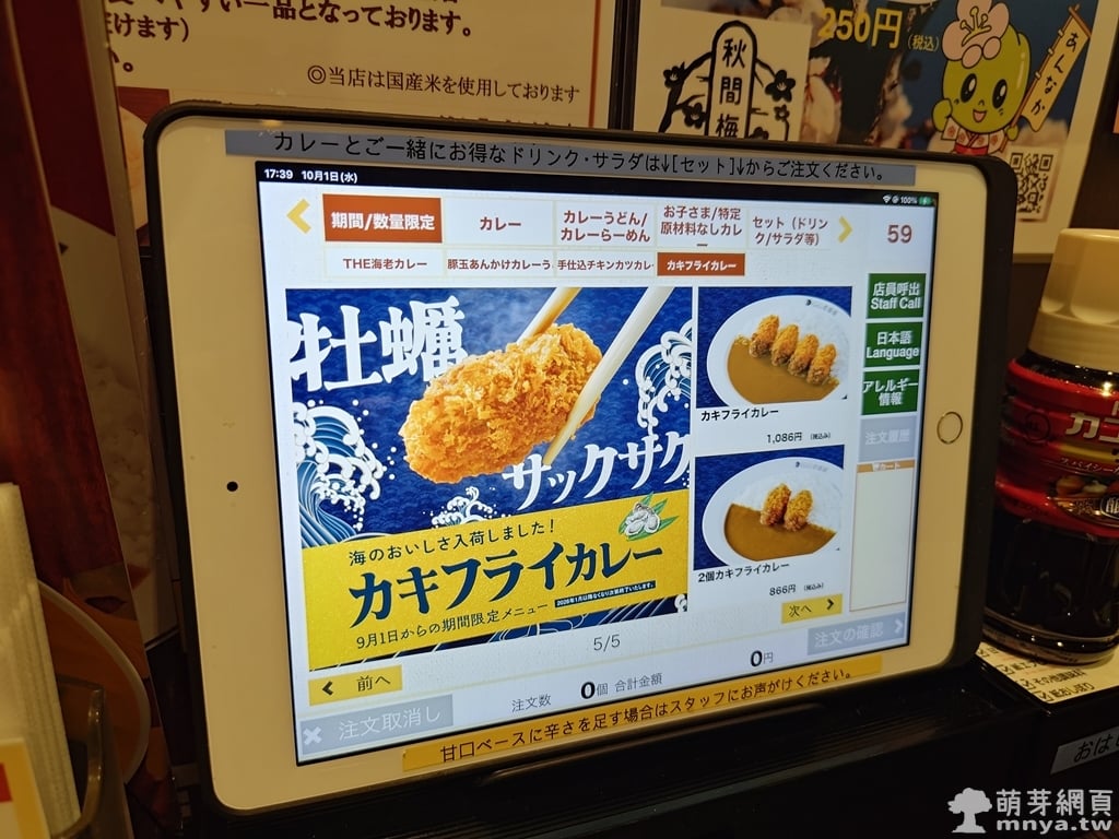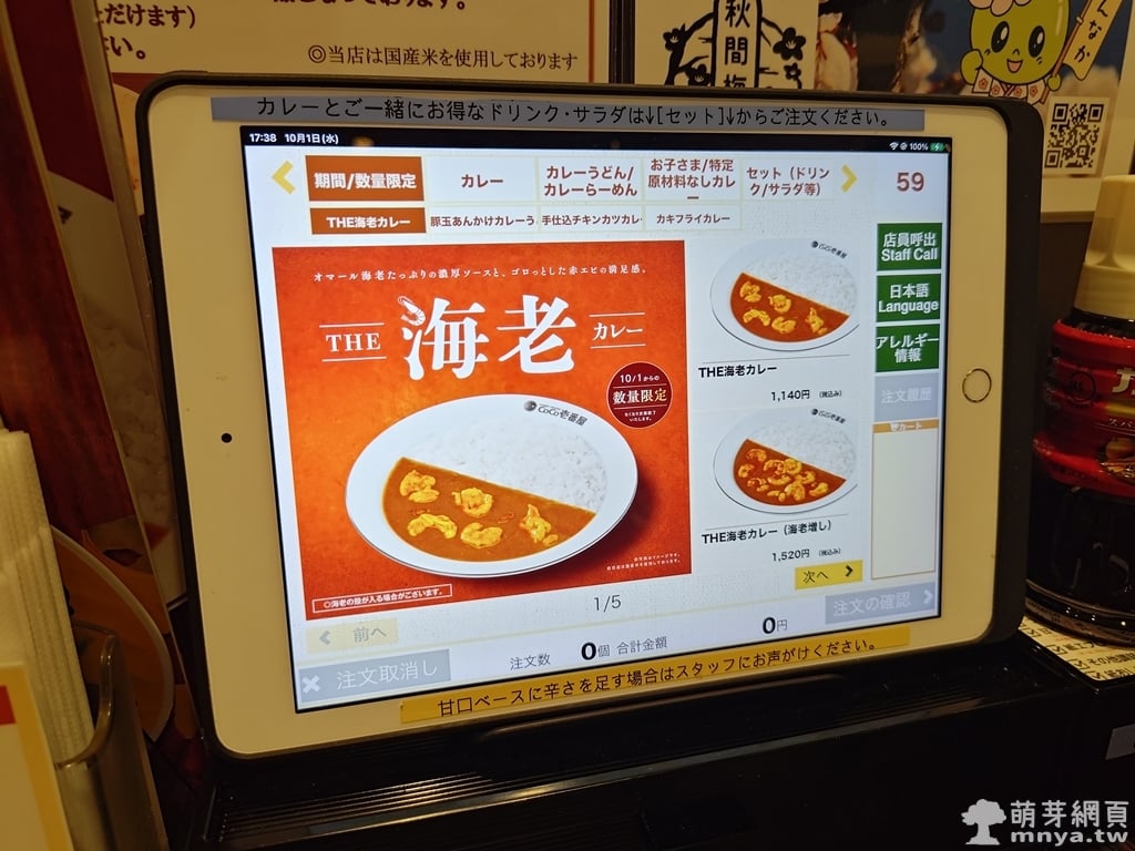 ▲ 平板上顯示期間限定的「THE 海老カレー」。限定字樣讓人更想嘗試這道特別的季節菜色。