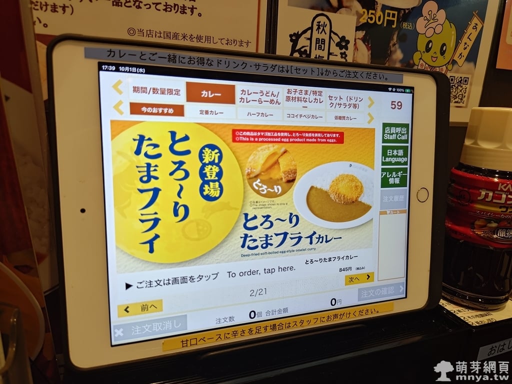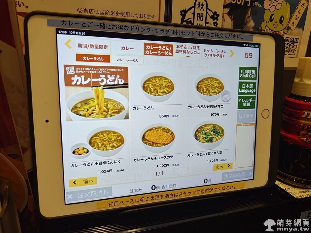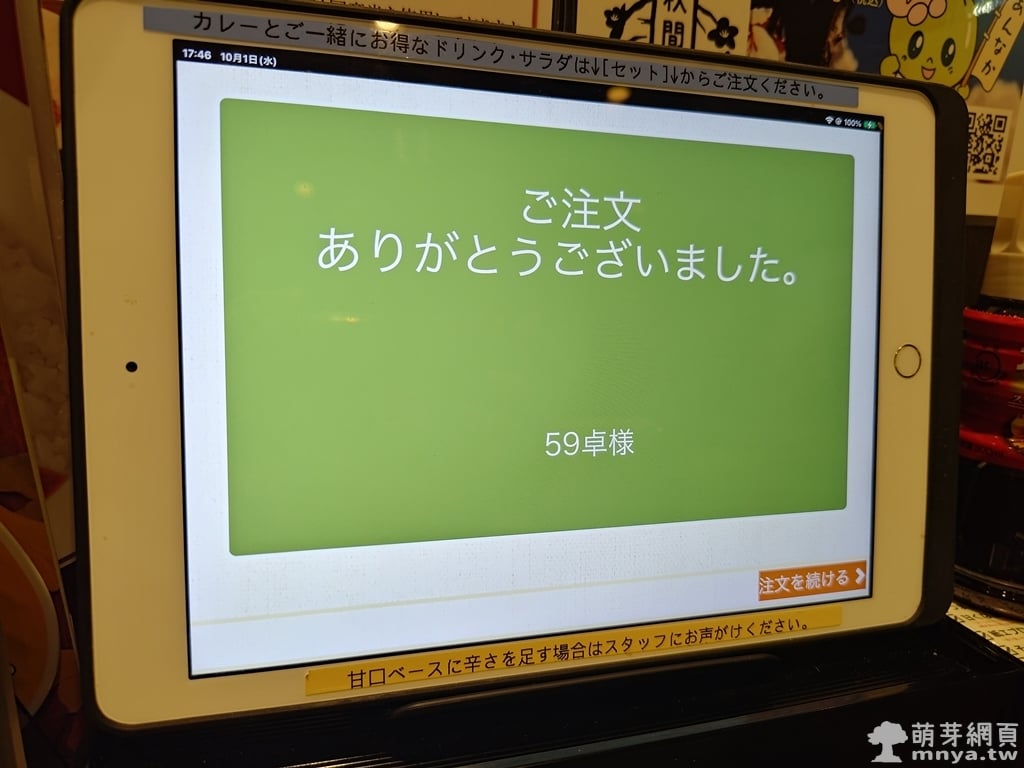 ▲ 點餐完成後螢幕顯示「ご注文ありがとうございました」,也就是「感謝您的點餐」,正式結束下單流程。