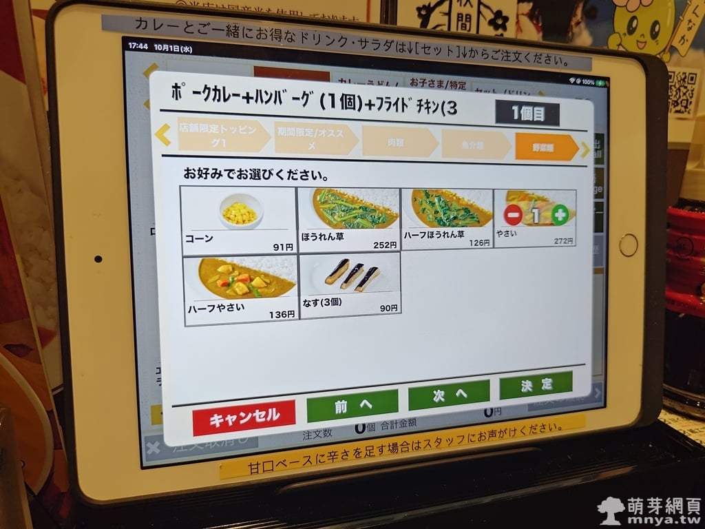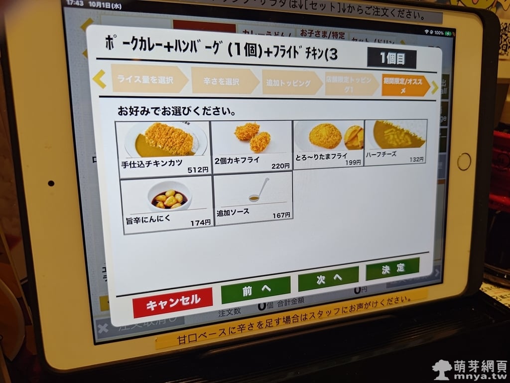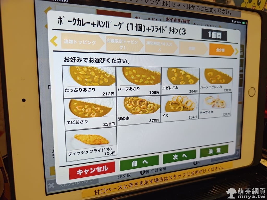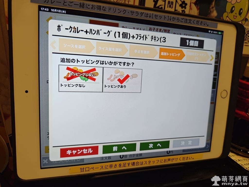 ▲ 最後可以選擇是否加配料,像是炸雞、蔬菜、起司等。CoCo 壱的客製系統設計完整,操作簡單。