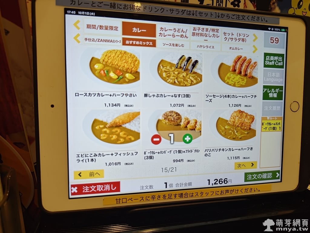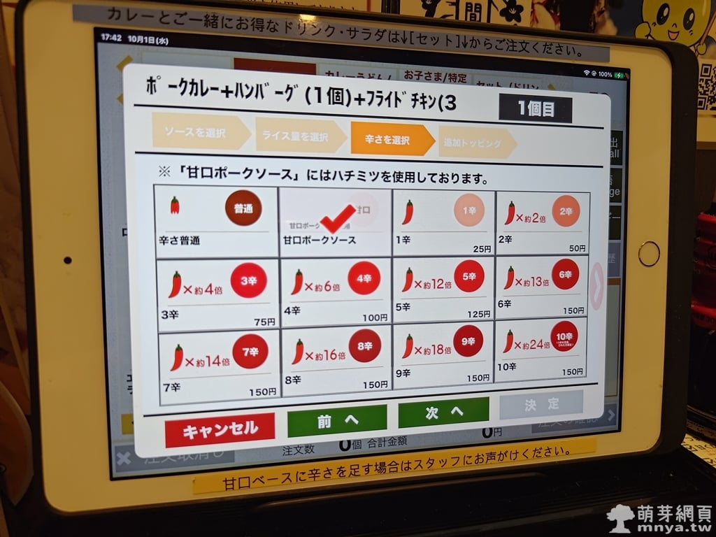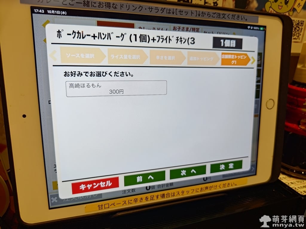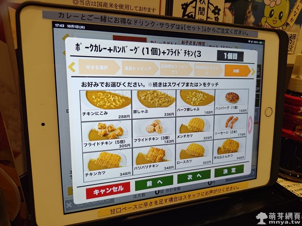 ▲ 最後可以選擇是否加配料,像是炸雞、蔬菜、起司等。CoCo 壱的客製系統設計完整,操作簡單。