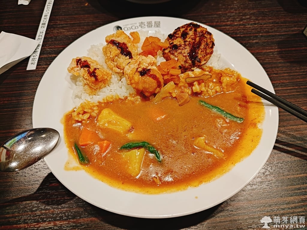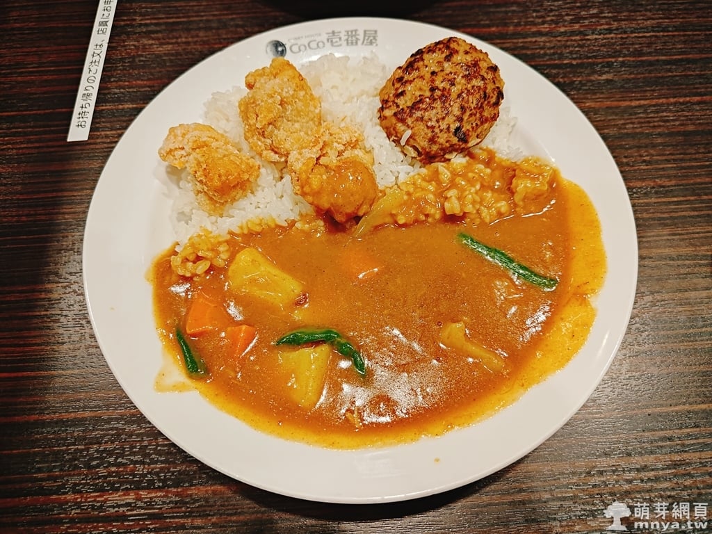 ▲ 淋上芳醇ソース後,炸雞與漢堡排的味道更加濃郁。搭配微甜咖哩與蔬菜,鹹香平衡,讓人一口接一口。