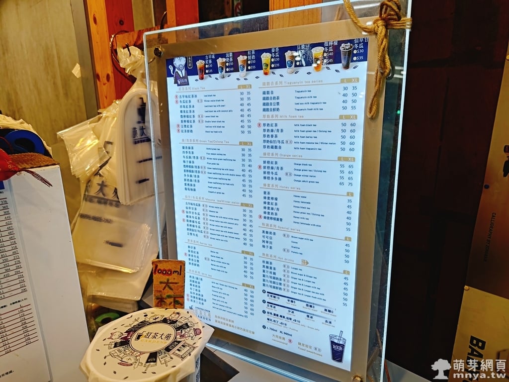 ▲ 店內的完整菜單明亮清晰,茶飲種類相當多樣,從古早味紅茶、奶蓋系列到蜂蜜、柳橙、冬瓜茶等都有,價位平實親民。