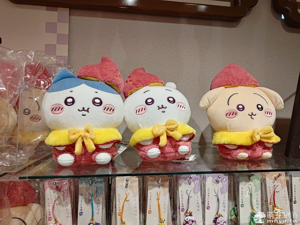 ▲ 吉伊卡哇、小八、烏薩奇穿上紅彤彤的地瓜裝,圓滾滾坐姿超療癒。頰邊腮紅與黃色蝴蝶結畫龍點睛,是川越店最具代表性的毛絨款,放在櫃子上就很有存在感。