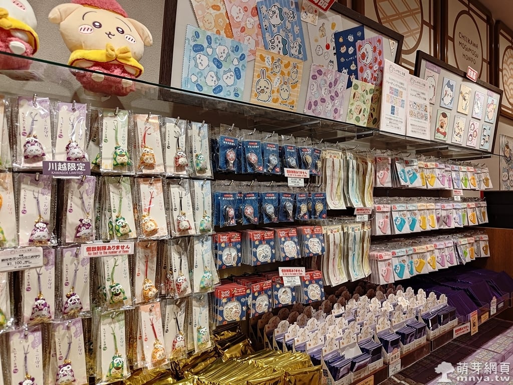 ▲ 「川越店限定」小物區擺放整齊,各種紀念鑰匙圈、吊飾都有地瓜元素點綴。