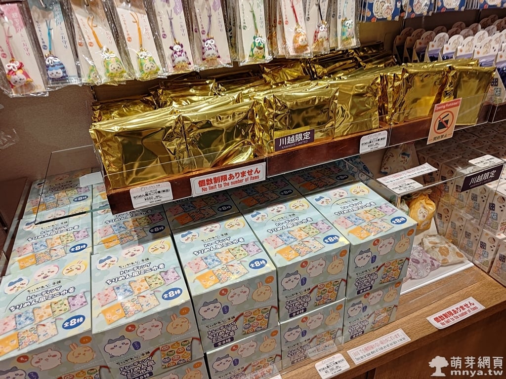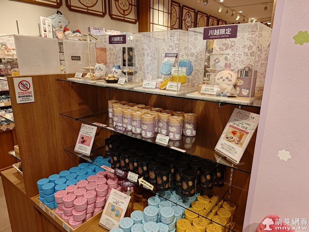 ▲ 「川越限定」商品區整面貨架陳列整齊,各式茶罐、紀念章等琳瑯滿目。