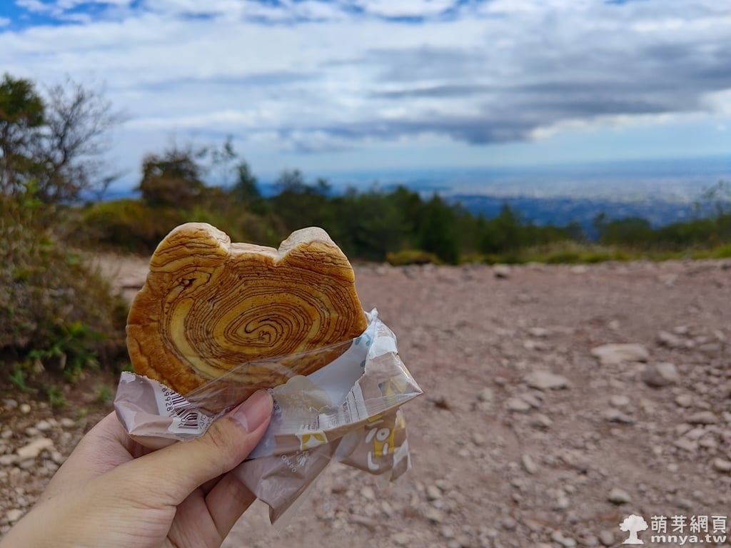 ▲ 切面圖來了!層層麵包捲紋清晰可見,內餡香氣濃郁,搭配山景一邊野餐一邊享用,更增添旅行的幸福感。