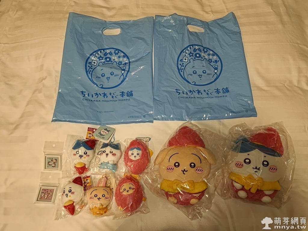 ▲ 這是我們當天除了麵包外的戰利品總覽!從娃娃、吊飾到磁鐵應有盡有,還有印有吉伊卡哇圖案的藍色提袋。