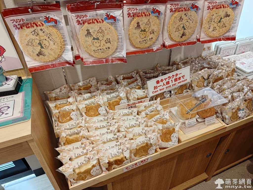 ▲ 一進門就能看到可愛的零食區,這裡販售印有角色圖樣的蝦餅與角色麵包。每種角色限購一份。