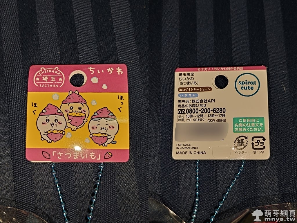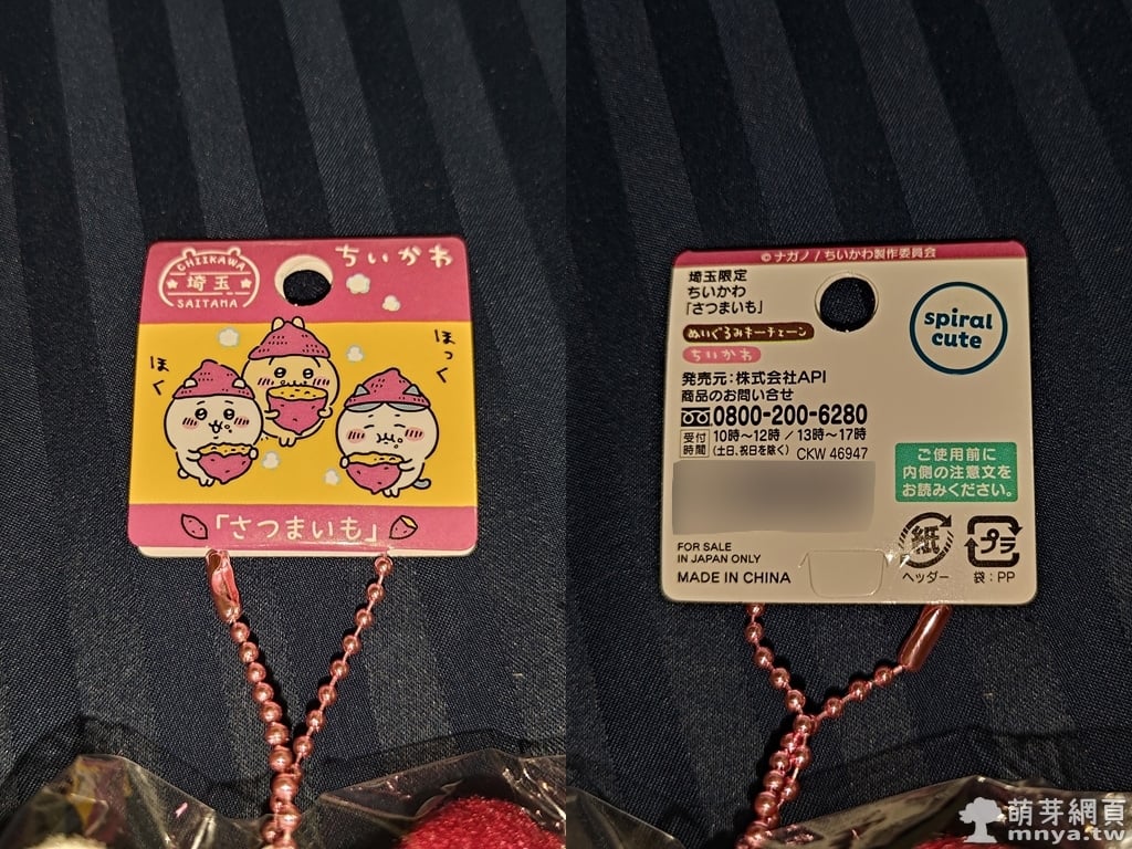 ▲ 埼玉限定地瓜吊飾吊牌,背面印有商品資訊與聯絡方式。這類地方限定周邊,許多粉絲會特別蒐集不同地區版本。